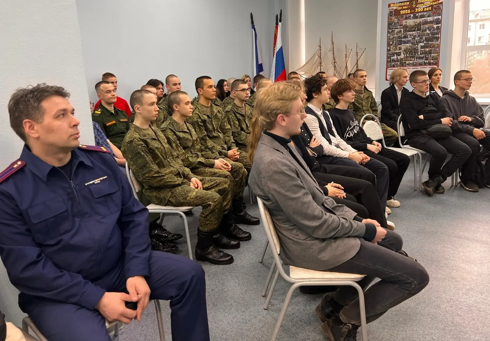 Помощник руководителя управления по общественно-политической работе Александр Олейник рассказал учащимся ведомственного кадетского класса о значении памятной даты, о необходимости сохранения исторической правды и увековечения памяти о подвигах победителей.