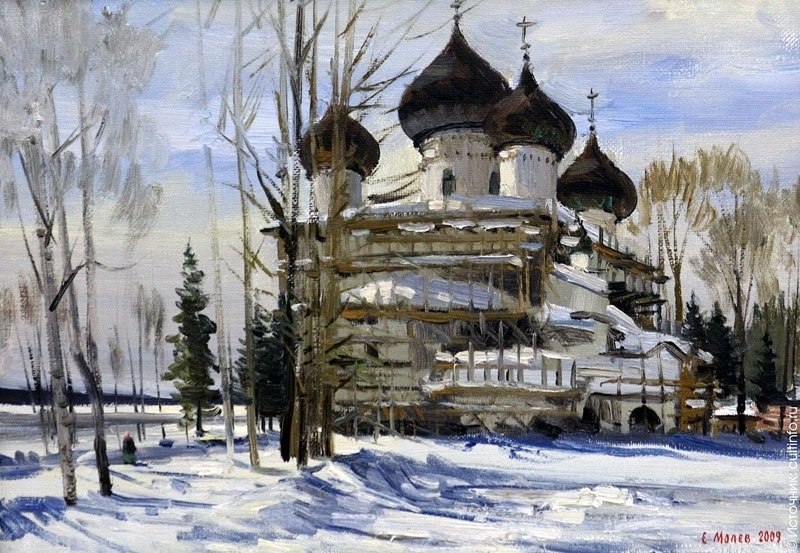 Это пейзажи северной природы, старинные архитектурные памятники Русского Севера. Евгений Молев — родственник Александра Борисова по материнской линии. Их объединяет любовь к Северу, его истории и духовному становлению.