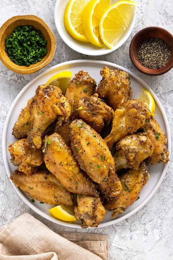 Подавайте крылышки с ломтиками лимона и свежей зеленью в качестве закуски или с гарниром из зеленого салата, отварного риса или картофеля.