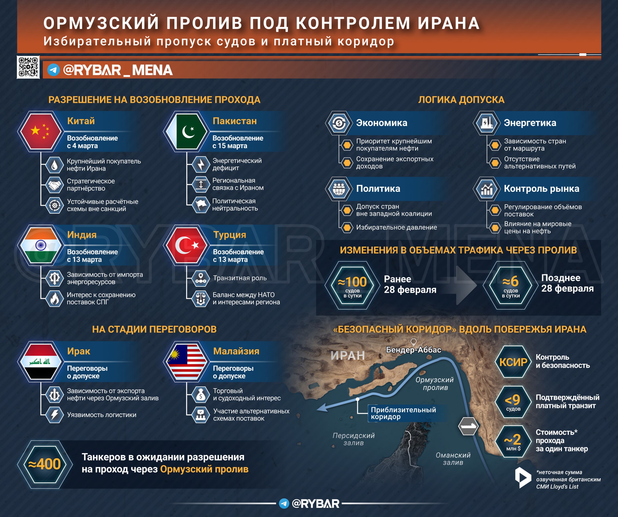 На фоне разговоров о «ручном управлении» проливом зафиксирован ещё один показательный эпизод — через Ормуз якобы прошёл танкер с иракской нефтью — первый с начала войны.