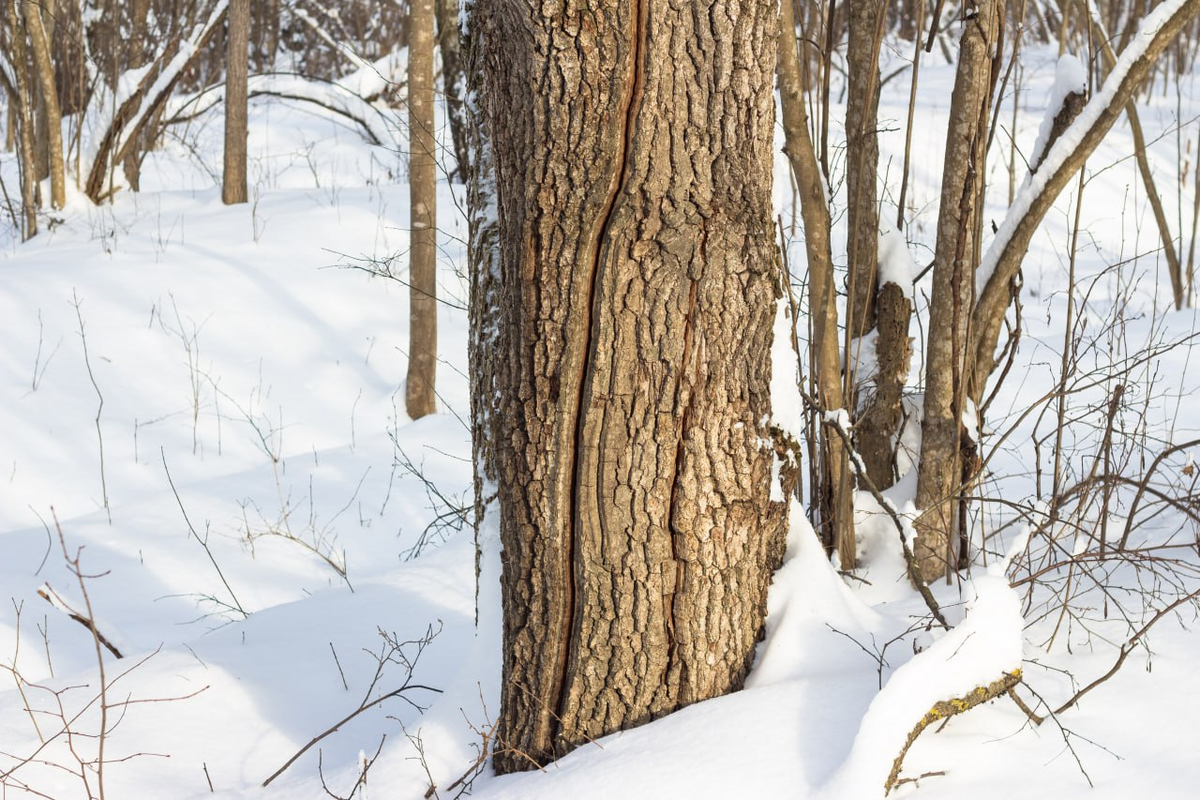 Морозобоины — это вертикальные трещины, появляющиеся на деревьях в зимний период. Чаще их можно увидеть на южной стороне стволов. Эти повреждения могут достигать длины нескольких метров и слышны на большие расстояния, создавая характерный треск. Более того, деревья, такие как платаны в Мичигане, на протяжении десятилетий подвергаются этому циклу, открывая свои трещины зимой и закрывая их летом.