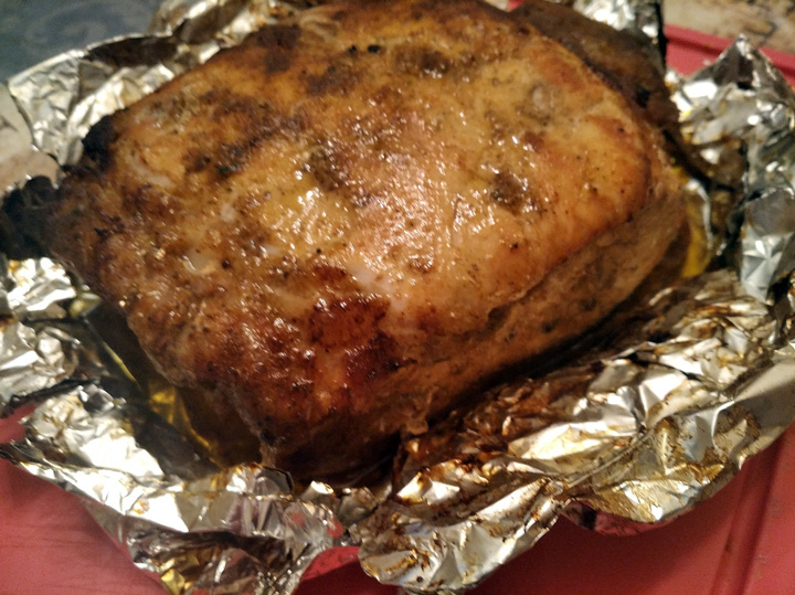 По истечении времени, втереть в мясо соль по вкусу (можно обойтись и без неё). После этого запекать в аэрогриле в двух слоях бумаги или фольги около 60 минут. Если используется духовка с конвекцией, может потребоваться немного больше времени. Важно учесть также размер куска мяса.