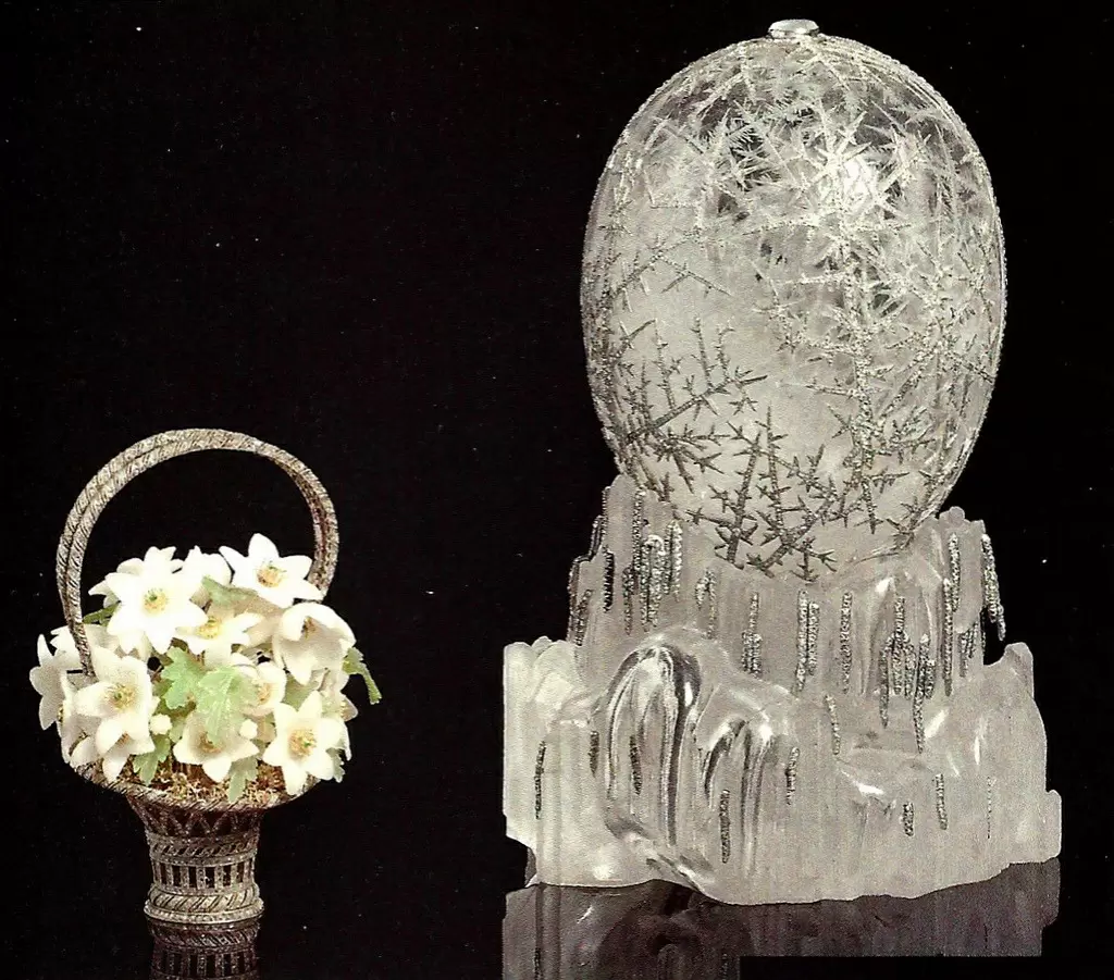 Дизайнером «Зимнего яйца» была Альма Пиль — одна из самых известных ювелиров XX века. В отличие от других произведений Фаберже, это яйцо выполнено в монохромной гамме, что делает его стиль утонченным и сдержанным. Его корпус сделан из хрупкого горного хрусталя и украшен более чем ста бриллиантами огранки «роза». Благодаря этому, оно считается образцом ар-деко и воплощает в себе безупречный вкус, элегантность и роскошь.