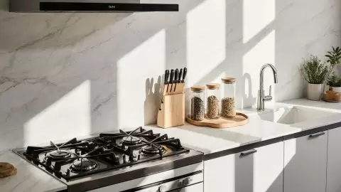 Кухонную технику следует разделить на три категории: те вещи, что нужны каждый день (например, чайник и тостер), можно оставить на столешнице. При этом устройства, используемые раз в неделю (блендер, миксер), лучше переместить на легкодоступные полки. А редкие приборы, такие как мороженицы и йогуртницы, можно убрать в дальние шкафы. Такой подход освободит пространство и избавит от ощущения перекрытости.