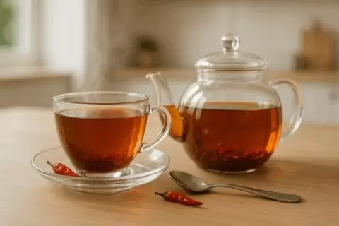 Перец чили, известный своим жарким вкусом, активно влияет на метаболизм, ускоряя сжигание калорий. В сочетании с ройбушем, который не содержит кофеина и богат антиоксидантами, данный напиток становится настоящим находкой для тех, кто стремится к здоровому образу жизни и контролю веса.