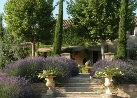 Сад в стиле Прованс акцентирует внимание на простом и уютном, а не на помпезном. Включает аккуратные, формированные изгороди, ухоженные газоны и фонтаны, которые гармонируют с извилистыми дорожками и цветниками естественной формы.