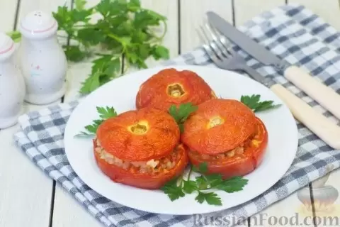 - Помидоры, фаршированные рисом. Этот легкий рецепт подчеркивает свежесть и сладость помидоров, которые идеально сочетаются с рисом и специями.