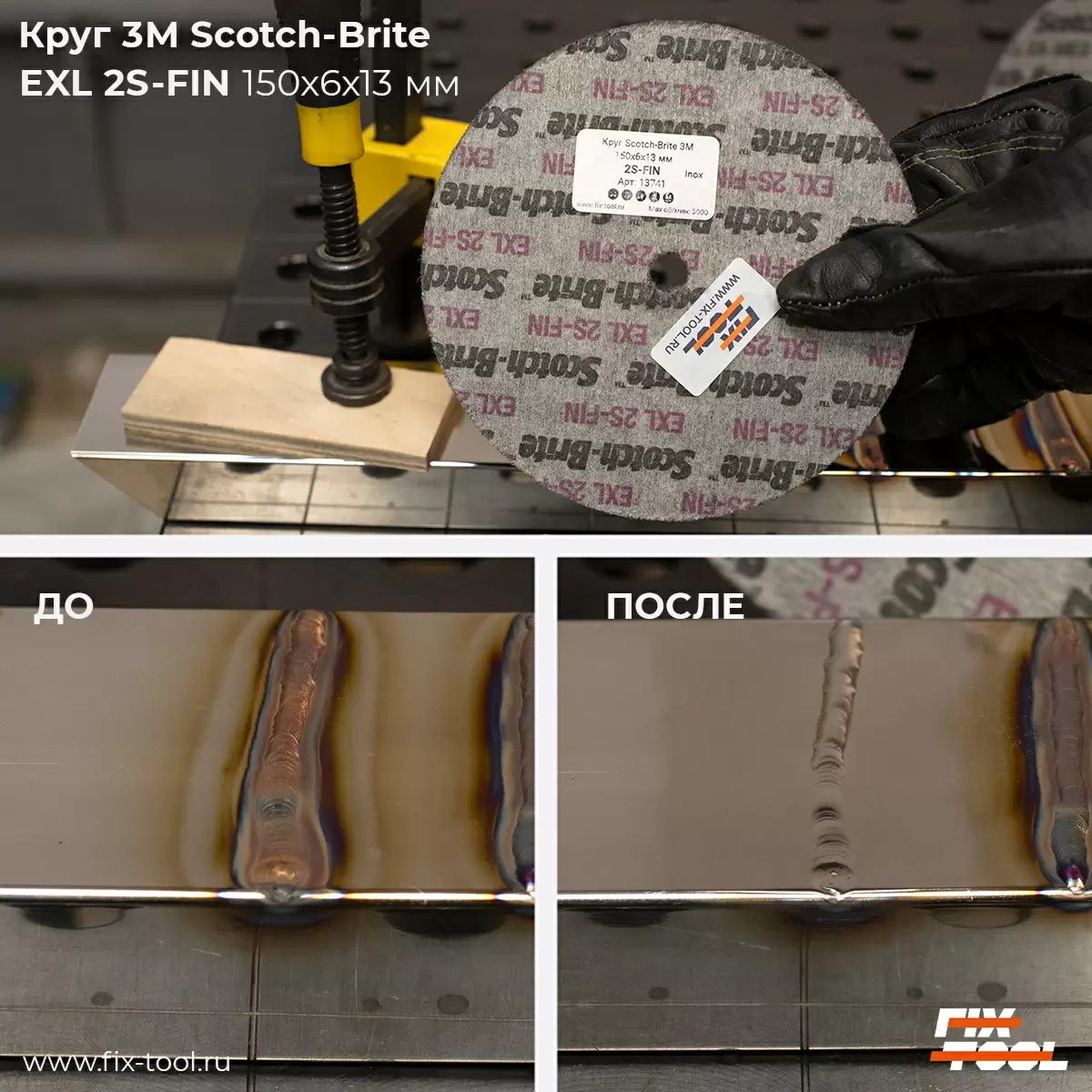 - Доводочные круги: Круги Scotch-Brite, такие как модель 3M EXL 2S-FIN, идеально подходят для быстрой очистки швов от побежалости, оставляя гладкую поверхность.