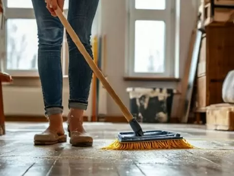 После ремонта зачастую остаются неэстетичные следы, такие как белый налет на полах, возникший из-за пыли, остатков побелки или штукатурки. Однако этот нелицеприятный момент можно легко исправить с помощью простых и доступных средств.