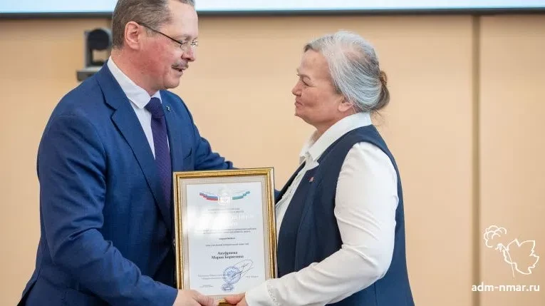 На торжественном мероприятии по случаю Дня местного самоуправления председатель Избиркома НАО вручил поощрения членам избирательных комиссий Нарьян-Мара.