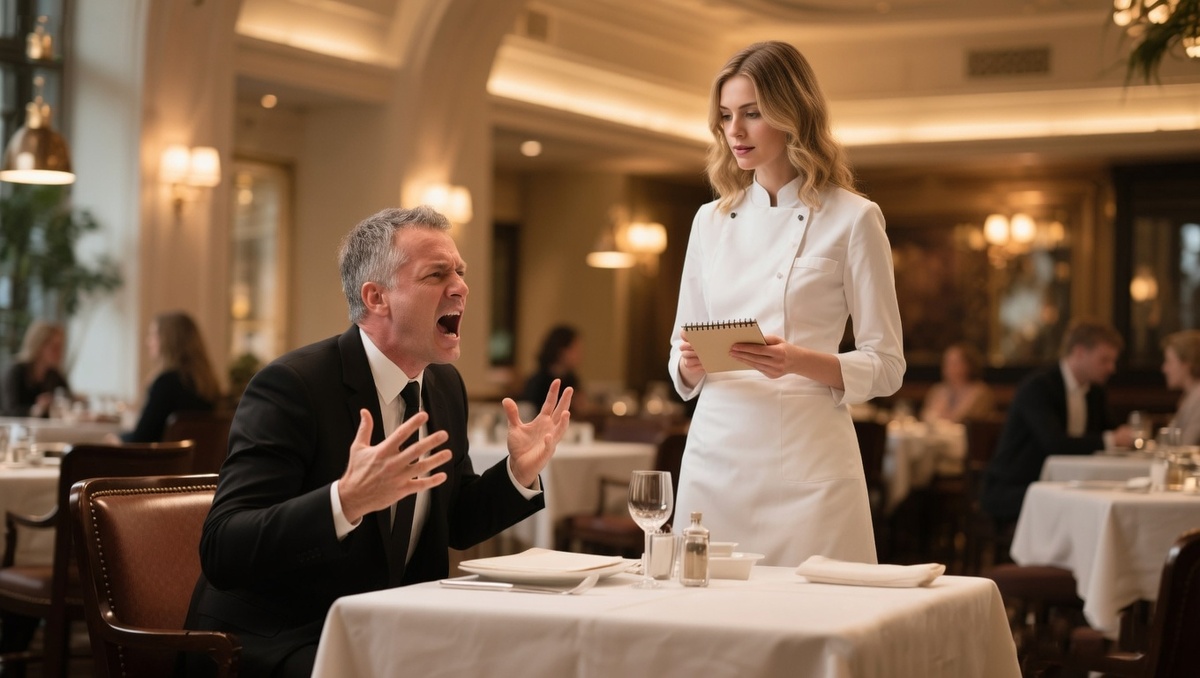 Все внимание зала переместилось на конфликт. В этот критический момент за соседним столиком сидела пожилая женщина с книгой. Вместо того чтобы оставаться в стороне, она спокойно произнесла: «Молодой человек, девочка просто принесла вам еду. Зачем так кричать?»