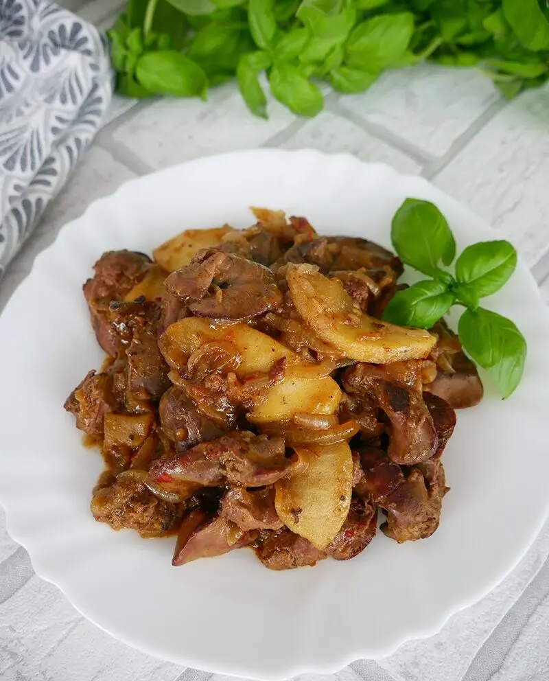 Это блюдо — выдающийся способ приготовления куриной печени, которая заиграет новыми красками благодаря сочетанию с яблоком и луком. Яблоко смягчает характерную горечь печени, а сладость и пикантность лука добавляют глубину вкуса. Такой деликатес отлично сочетается как с гарнирами, так и с домашним хлебом и пикантными соленьями.