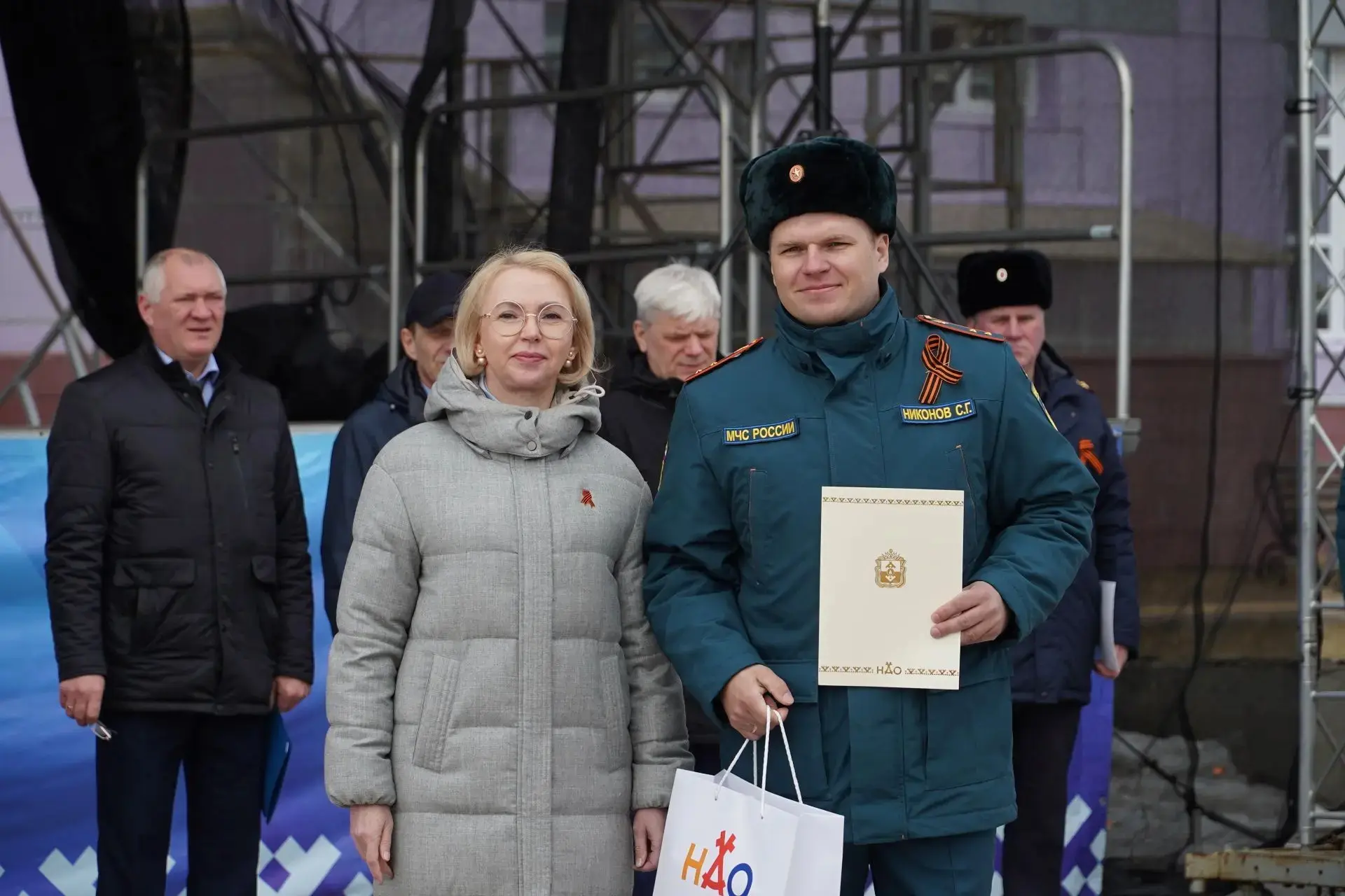 В этот праздничный день была рада лично поздравить тех, кто помогает спасать людей из огня. Кроме того, вручила звание «Почетный работник пожарной охраны НАО» водителю пожарного автомобиля КУ НАО «ОГПС» Евгению Толстову. Благодарственные письма Губернатора НАО вручены помощнику начальника караула пожарно-спасательной части федеральной противопожарной службы Сергею Никонову и помощнику начальника караула пожарно-спасательной части федеральной противопожарной службы Александру Хаймину.